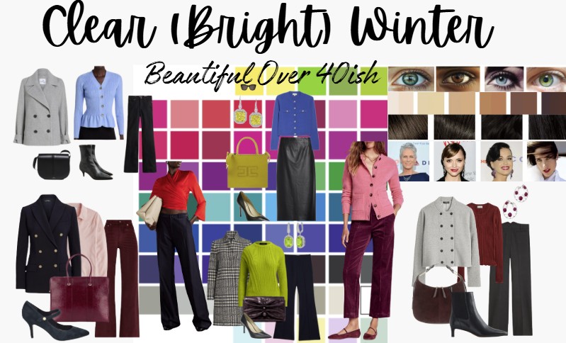 - Clear/Bright Winter: cool-neutral, bright, high contrast