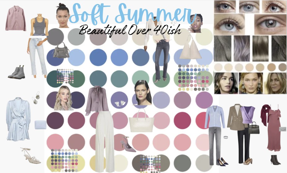 | Soft Summer | Light to medium skin with neutral-cool undertones, can look muted or softly beige | Medium blonde to medium brown, ash or soft neutral | Soft blue, gray, green, muted hazel, soft brown | Muted, blended, low contrast | Keira Knightley, Emily Blunt, Jennifer Aniston, Bianca Balti, Bella Hadid |